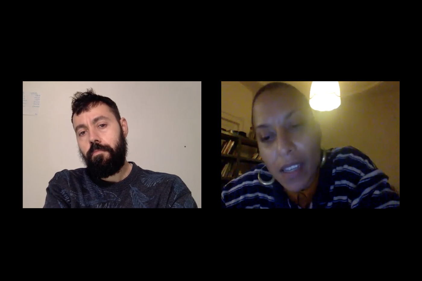 Immediately following these public presentations, discussions continued through an invite-only forum. Afterwords: Arkadi Zaides & Ligia Lewis (pdf) is an edited transcript of a private conversation that took place over Zoom on December 5, 2020, between the named artists, ICPP students, faculty, staff, and alumni.