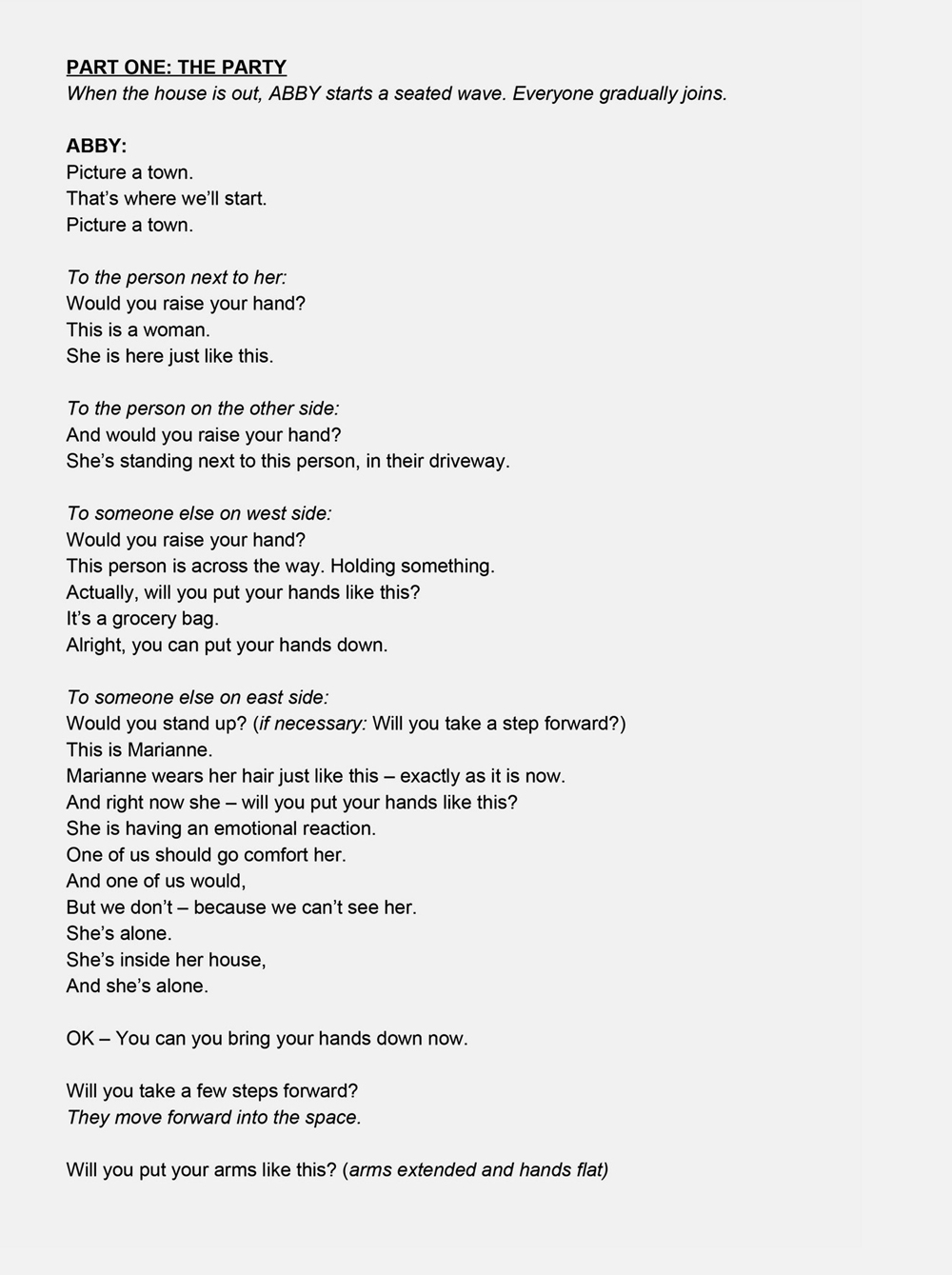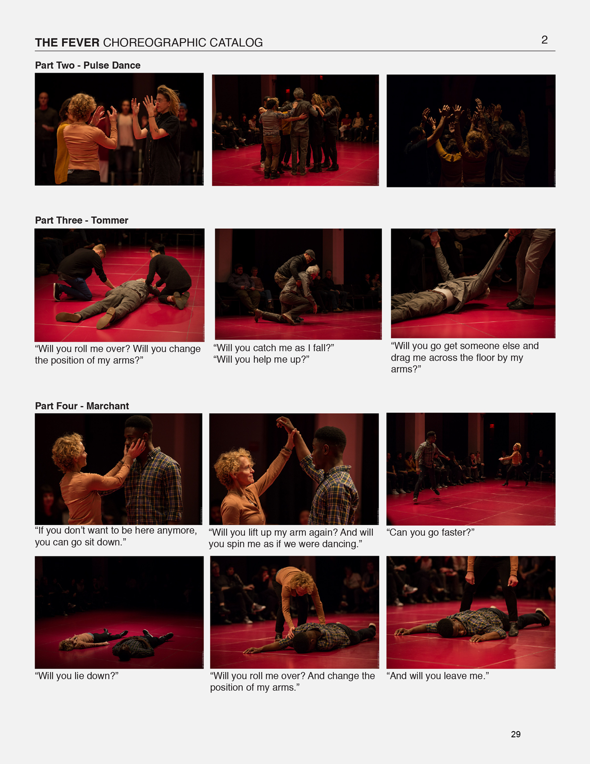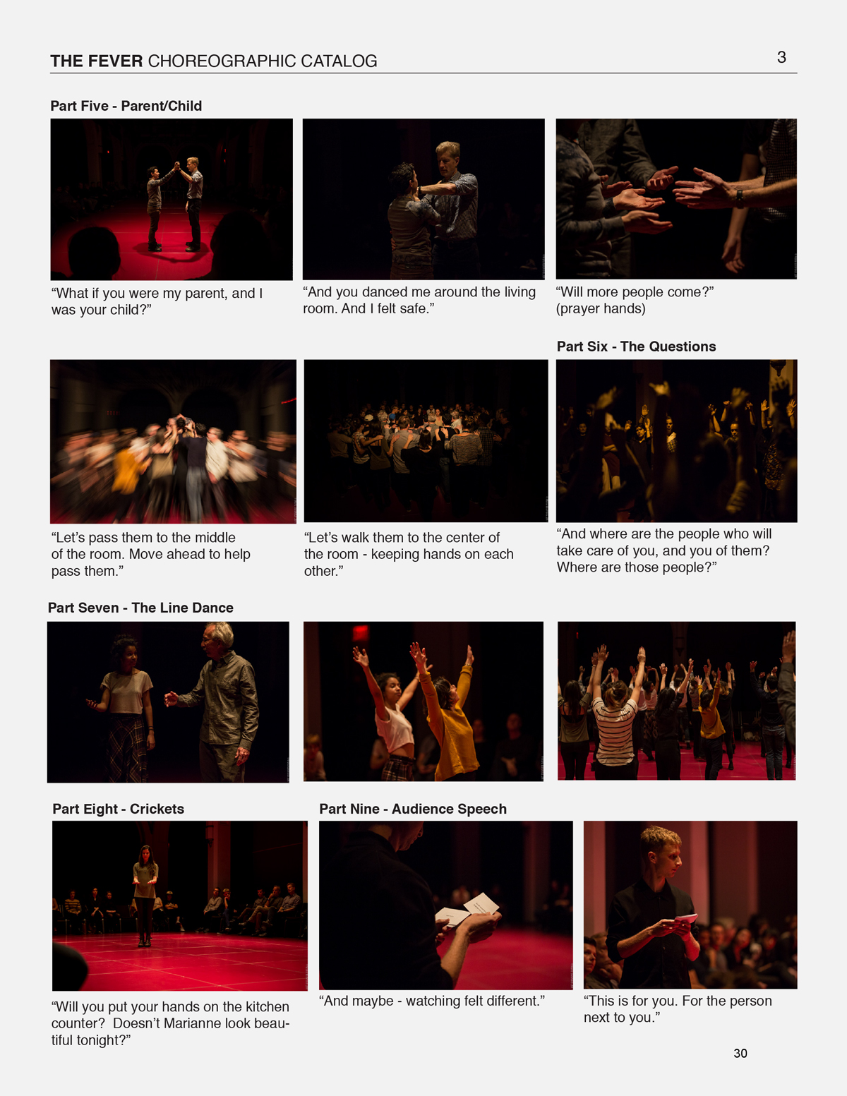 This page includes documentation generated from the creative development and performance of The Fever, performed in collaboration with the audience. These materials speak to the fixity and stability of the script, in contrast to the changeful instability of the audience’s participation in real time.