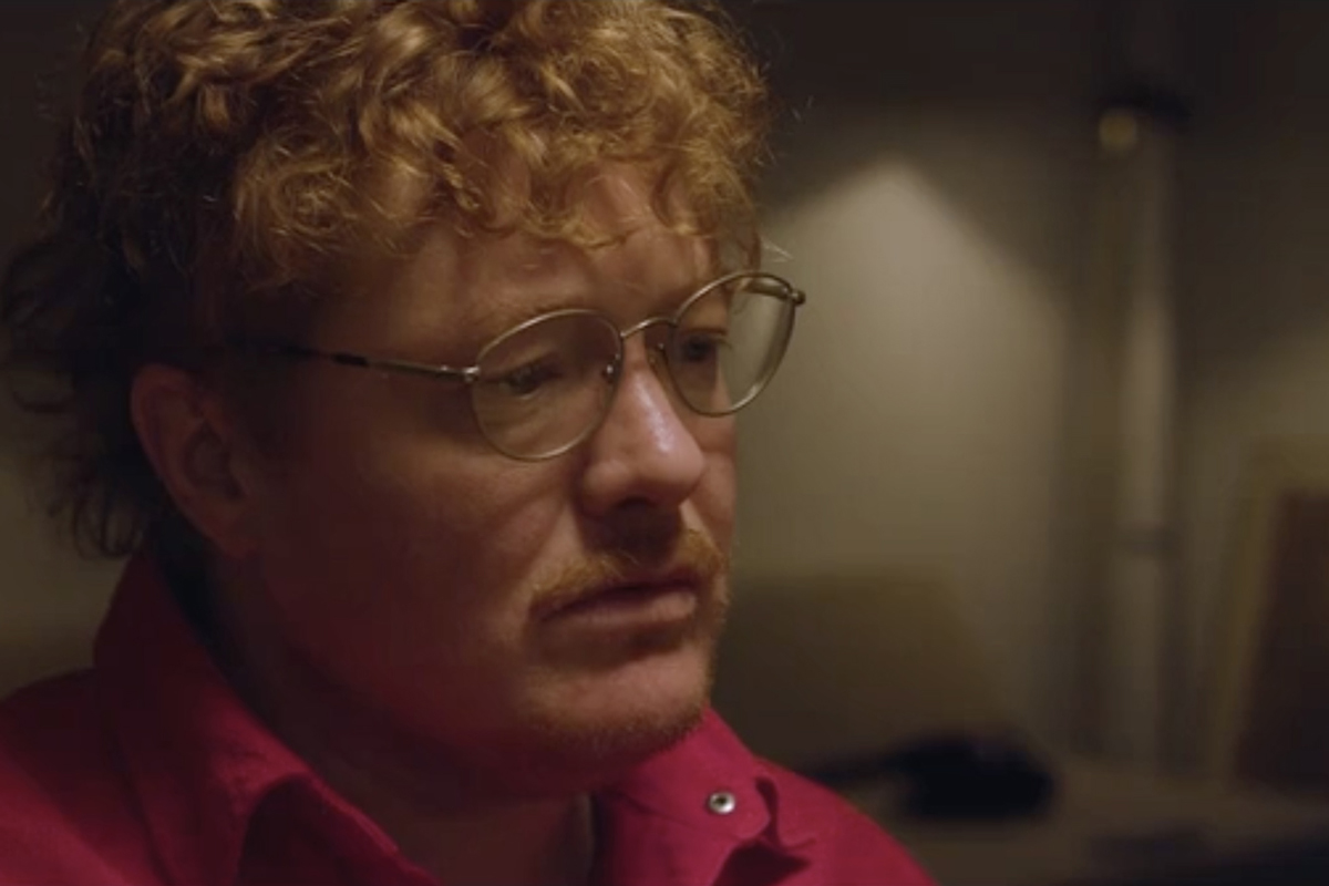 In the first video, Becca Blackwell peers into an old computer monitor with a maroon background and animated infinity line. Existing between genders, they have pale skin, short red curly hair, a mustache, and are wearing small round glasses and a crimson red button-up shirt. An automated voice speaks from the computer asking Becca if they are social or antisocial and if they’d like their OS to have a male or female voice. Becca hesitates and the operating system initiates. A close-up view of the computer screen shows the infinity line forming into a circle. A conversation between Becca and a figure on-screen ensues.