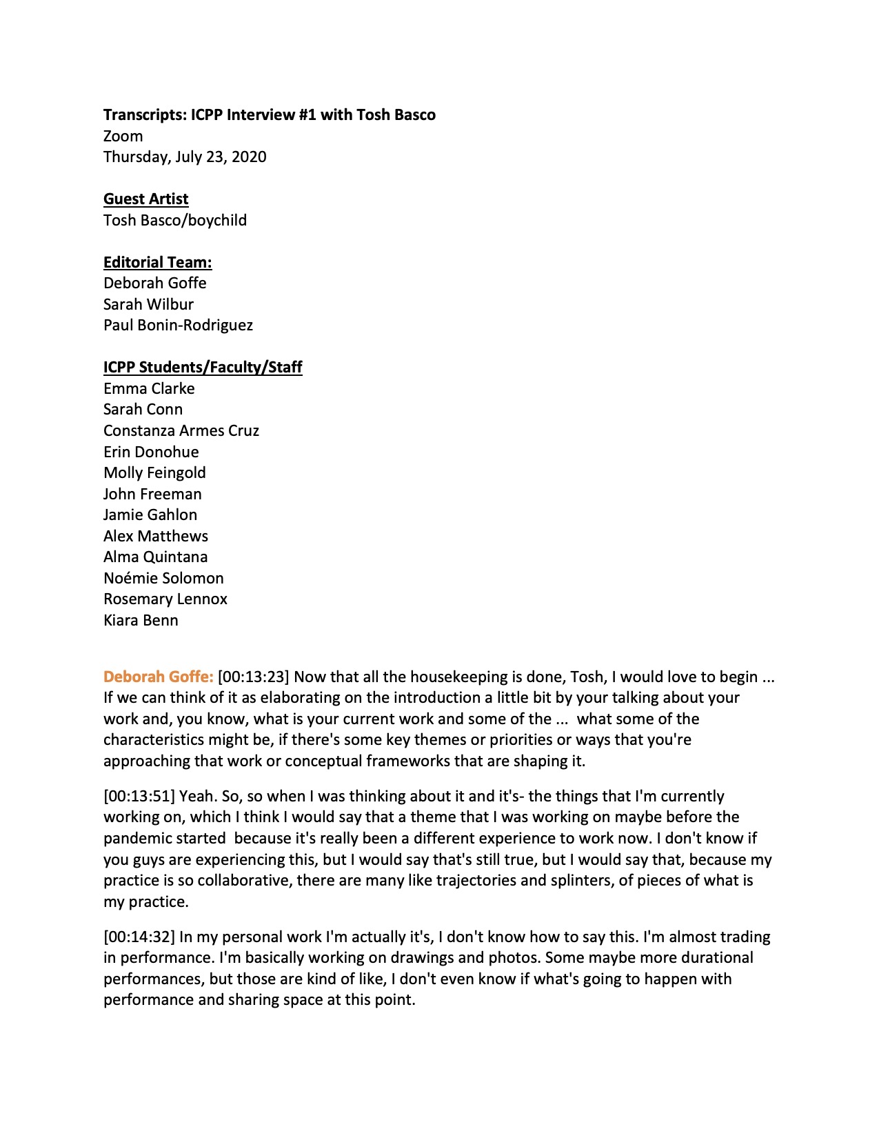Partial transcript from an Interview with ICPP and Tosh Basco/boychildd, Thursday, July 23, 2020.