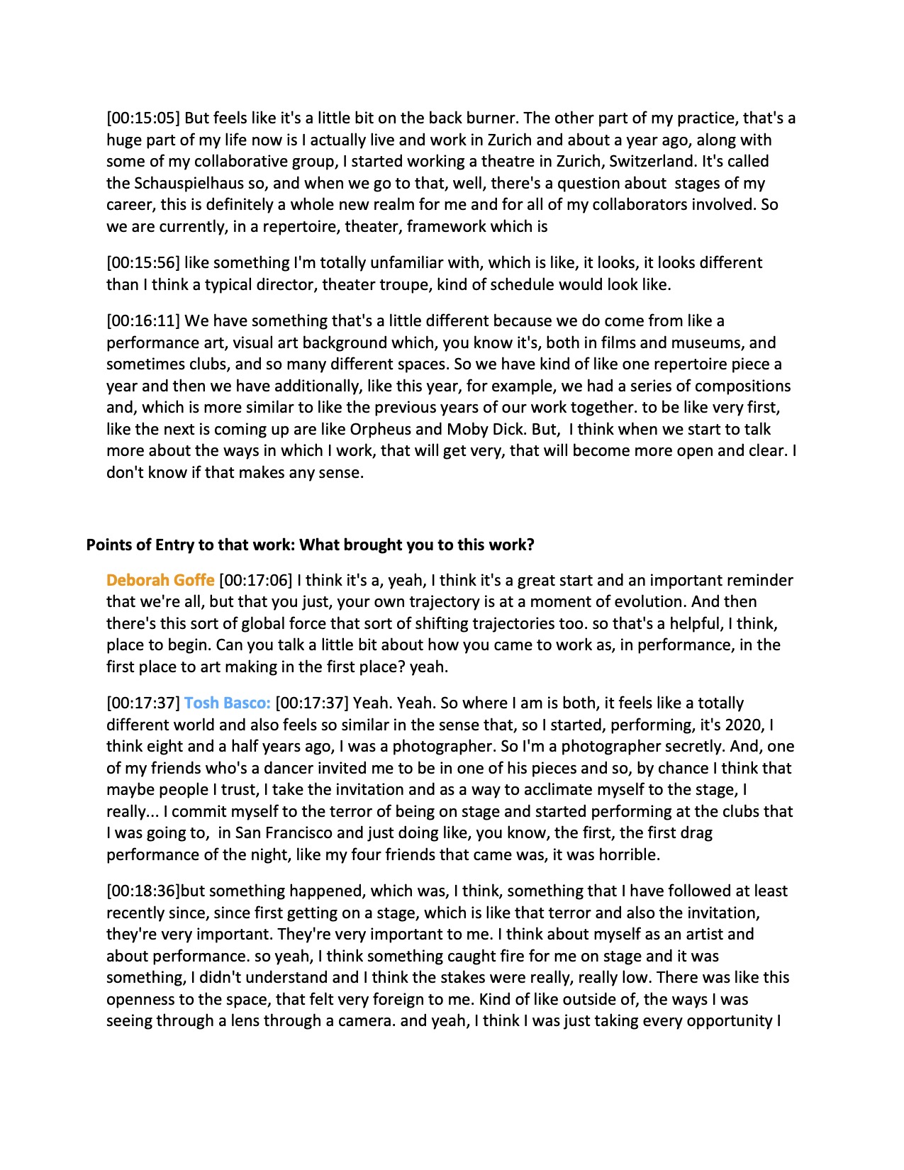 • I imagine a few different things will prove relevant over the course of your career. I also have particular interest in the next phase of your work at the theater in Switzerland. I imagine you will know so much more about this by the time we all gather again to talk in November. So perhaps we can save any detailed discussion about that transition for later, but it would be great to have some preliminary insight into how the opportunity came to be, and your vision for what it will make possible.