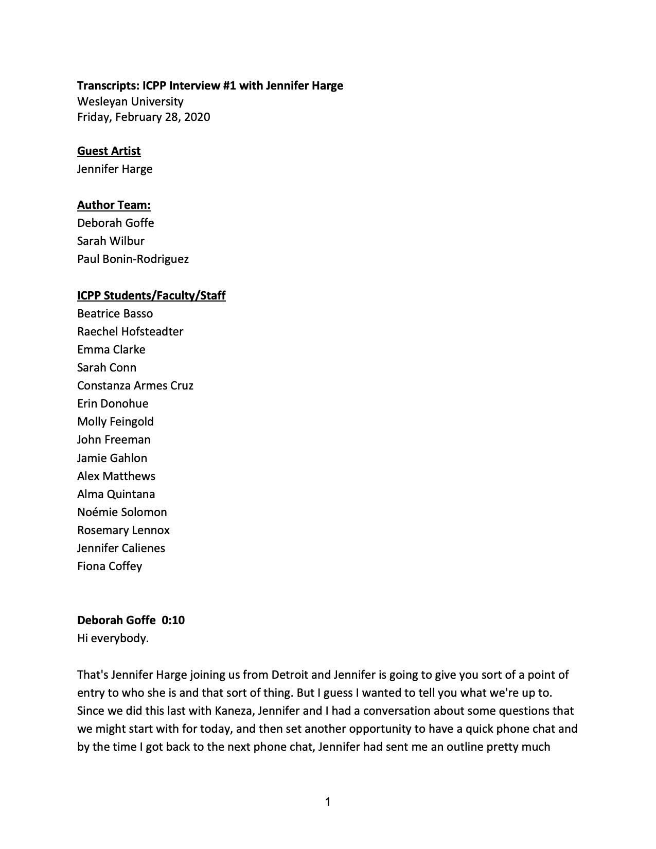 Partial transcript from an Interview with ICPP and Jennifer Harge, Friday, February 28, 2020.