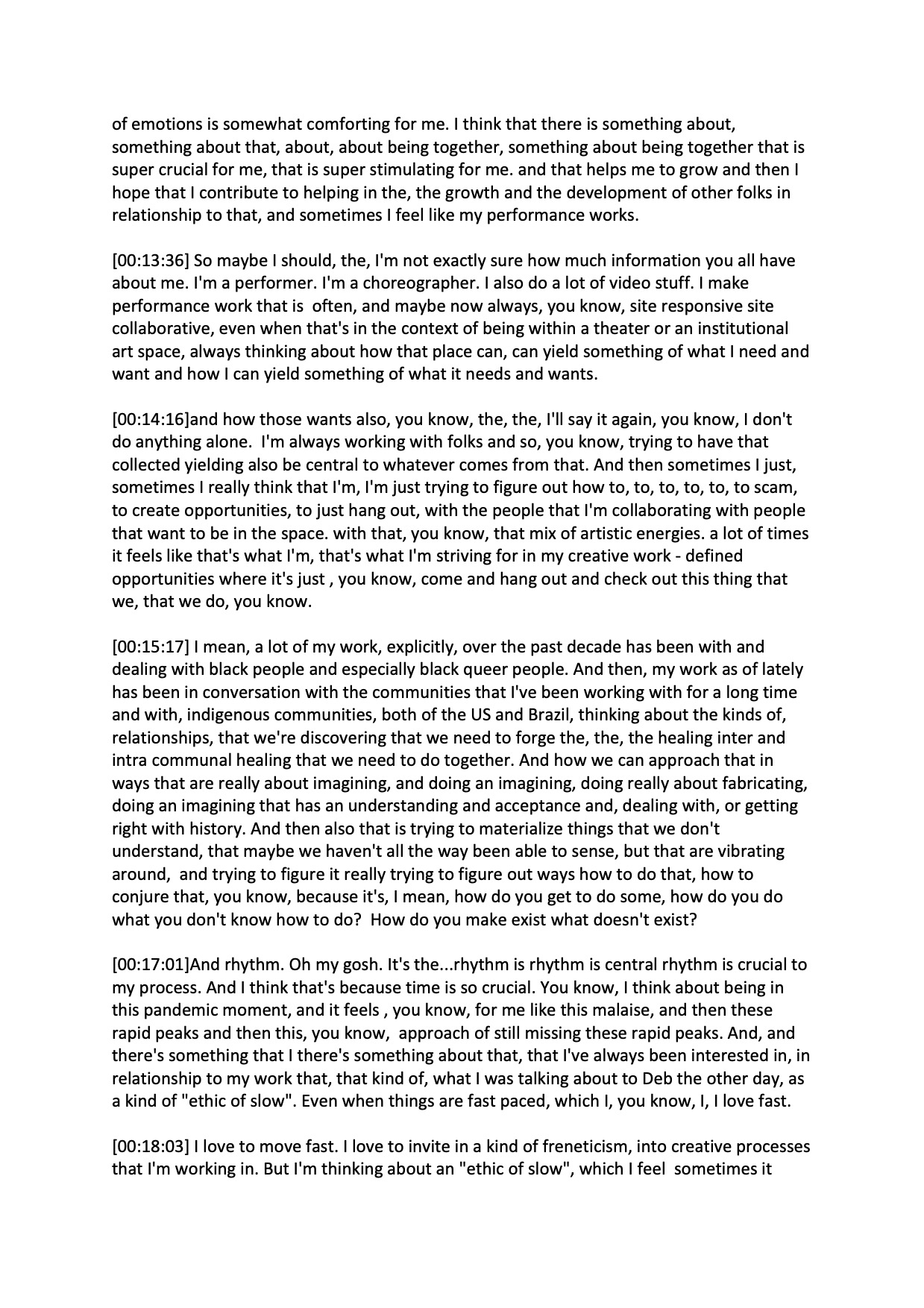 • What relationships, affiliations, networks, and/or systems of provisioning do you deem integral to your work as an artist and your evolving artistic trajectory? How do these relationships (institutional, interpersonal, and otherwise) manifest and what makes them effective? What do you crave from those relationships?